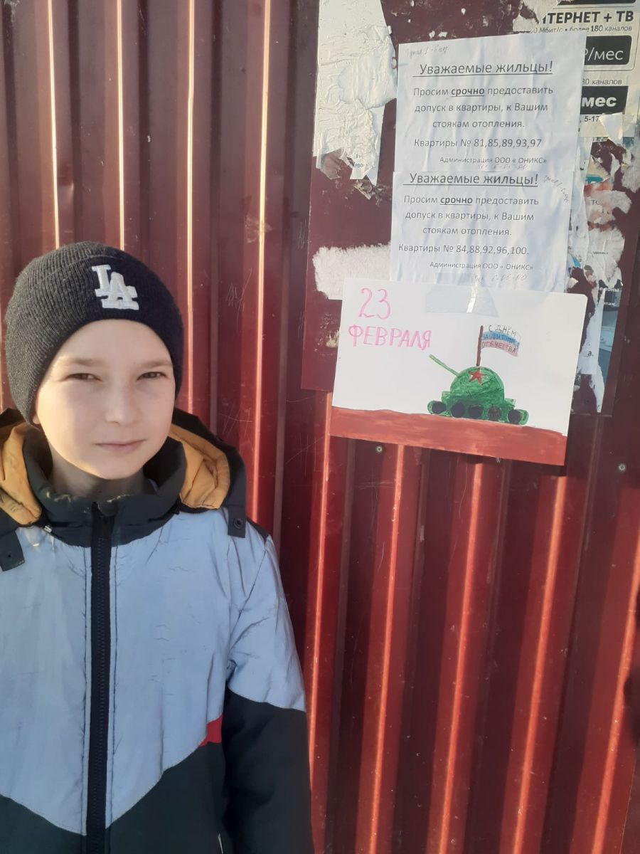 Ребята нашей школы приготовили поздравительные открытки с 23 февраля и поздравили жителей микрорайона с наступающим Днём защитника Отечества!