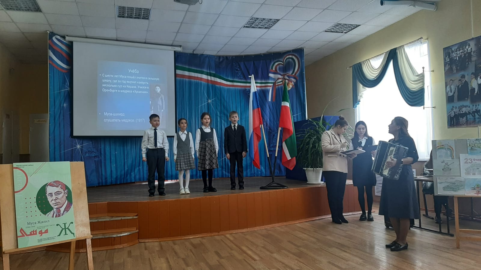 21 февраля, в День родных языков, в школе прошел литературно-музыкальный вечер “Муса – безнең йөрәкләрдә” ("Муса – в наших сердцах!”).