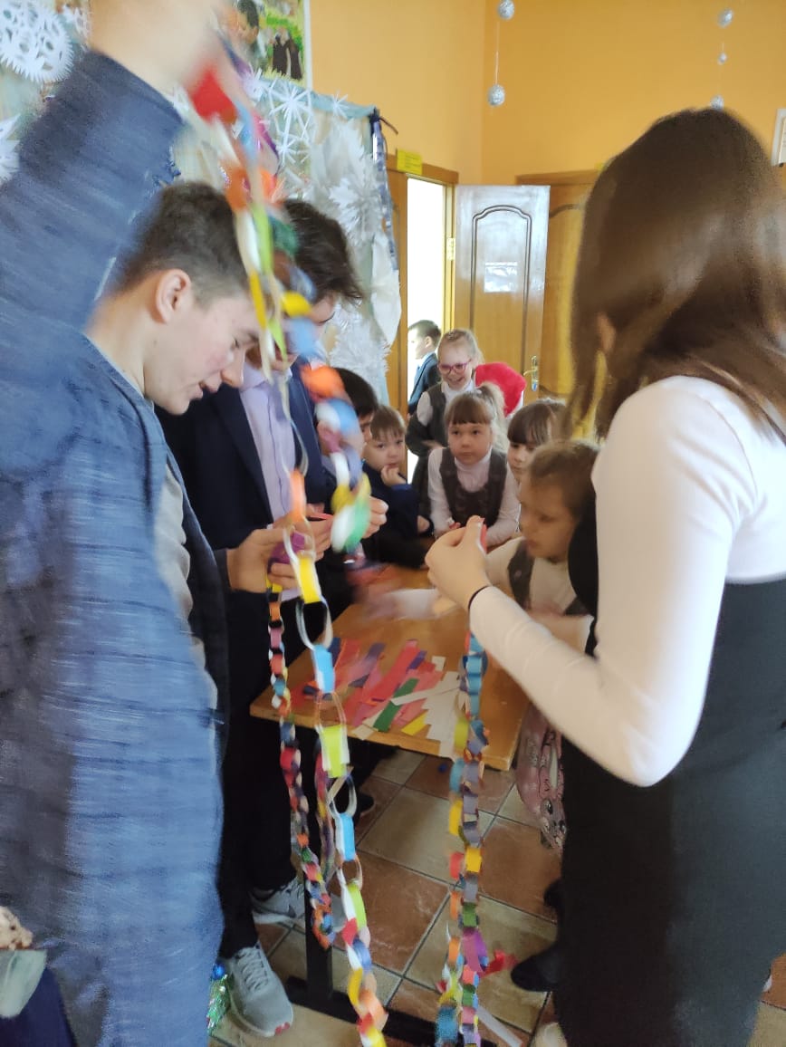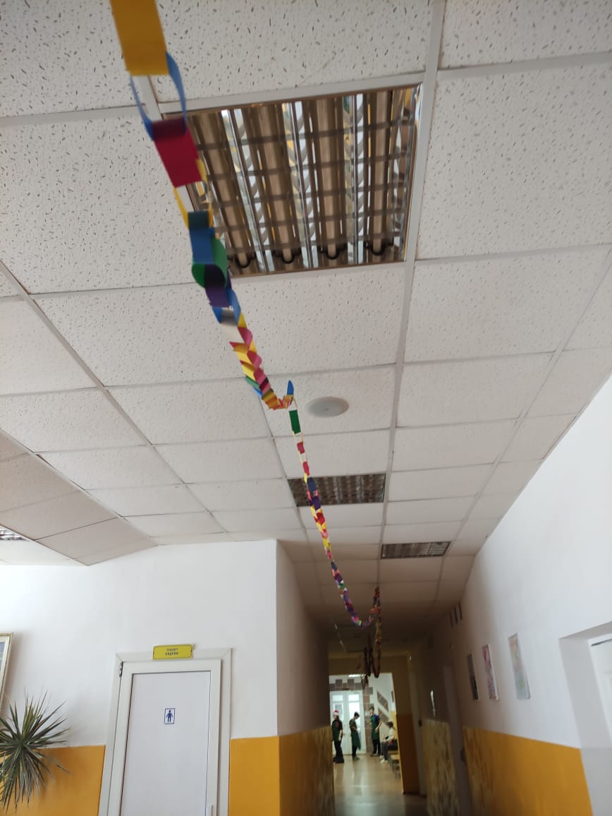 Школа сегодня приняла в акции "Гирлянда мира, добра и единства".Три перемены учащиеся всей школы создавали гирлянду- цепочку. Сколько же получилось звеньев, сколько нас, кто объединился?! Осталось только подсчитать!