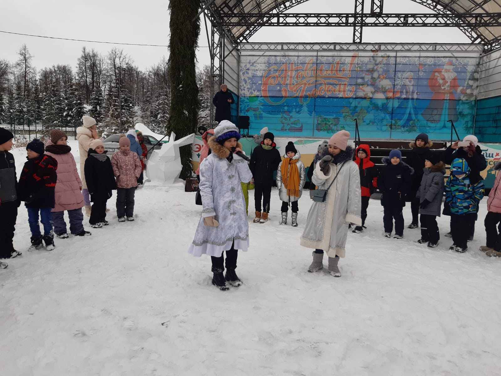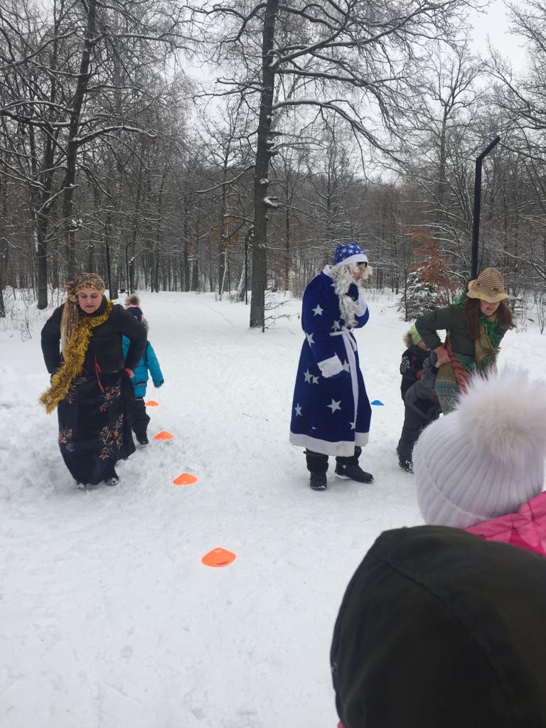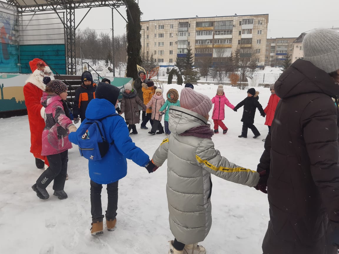 Сегодня ребята пришкольного лагеря водили хоровод с Дедом Морозом, играли в веселые игры.