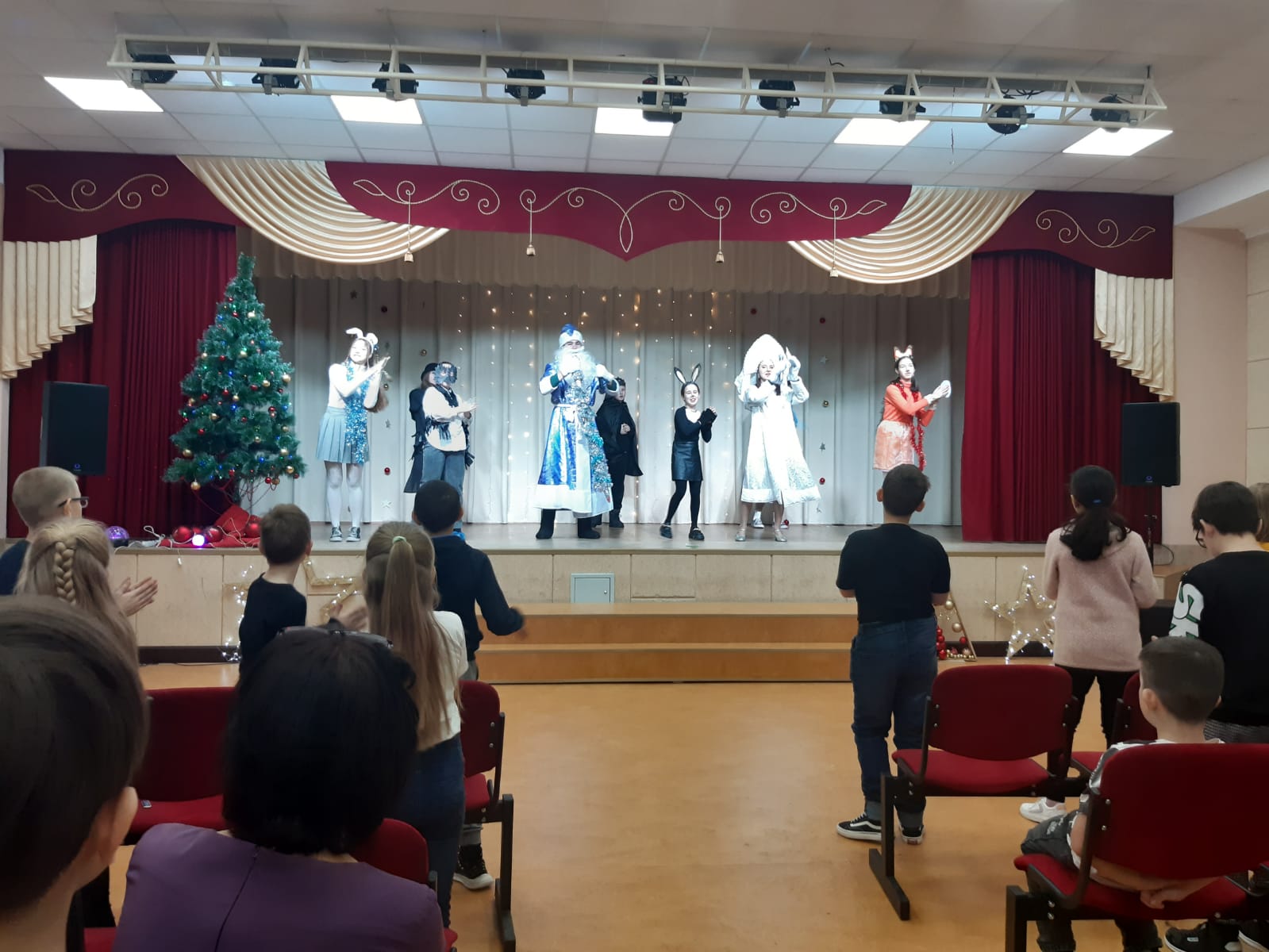 Сегодня ребята из пришкольного лагеря приняли участие в Новогоднем представлении" В поисках счастья.