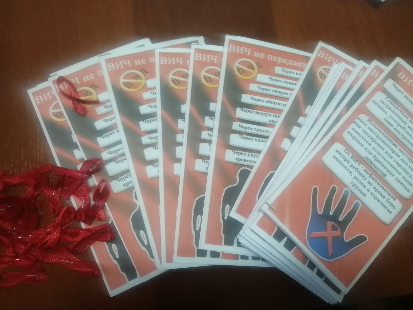 В знак памяти, сострадания, поддержки и надежды на будущее без СПИДа, в конце занятия слушателям раздали красную ленту и буклеты с информацией про ВИЧ/СПИД.