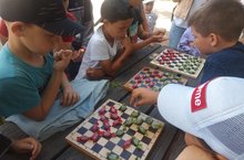 20 июля - Всемирный день шахмат. Ребята посетили шахматную школу. Все было очень интересно. После шахматной школы для детей был организован шашечный турнир, но вместо привычных черных и белых фигур на доске оказались конфеты.