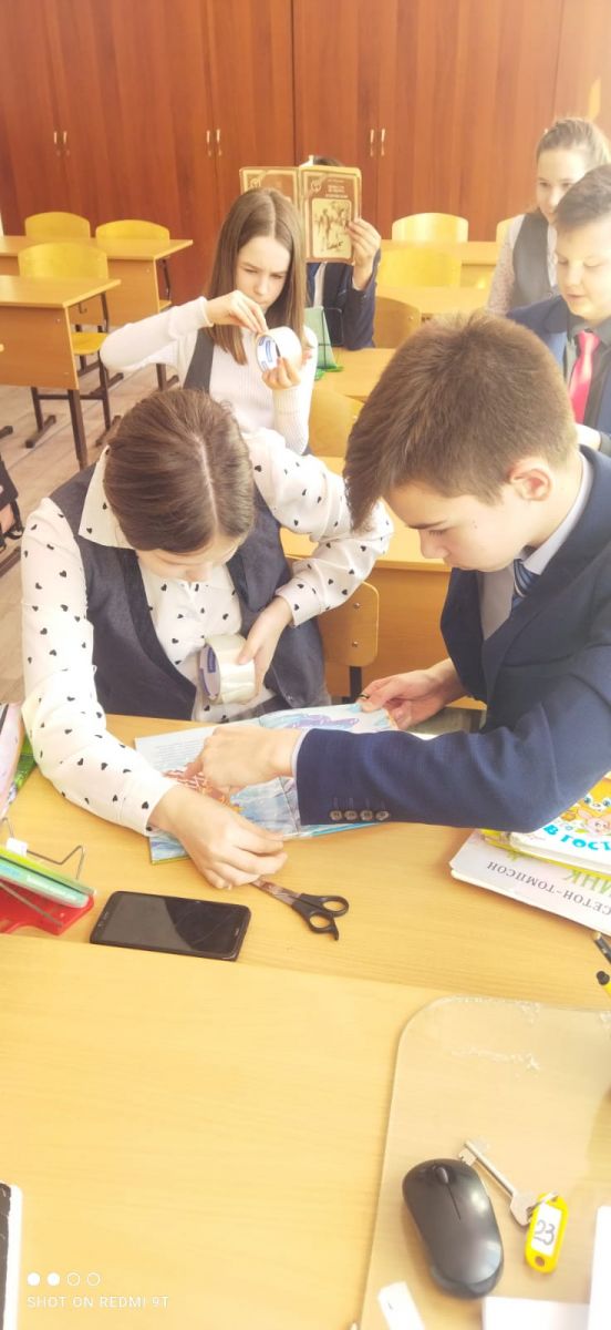 24.03. в рамках Недели детской книги учащиеся 6 -х классов на уроке технологии (учитель Мурадымова Д.Ф.) приняли участие в акции «Книжкин доктор». Цель акции научить детей бережно относиться к книге (не рвать, не рисовать на книгах, по мере необходимости подклеивать их самостоятельно, приобщить детей к чтению). Занимаясь ремонтом книг дети увлеклись по-настоящему полезным делом, включились в работу с желанием и интересом. При помощи ножниц, клея, скотча и бумаги, было отремонтировано 50 экземпляров книг художественной литературы. Таким образом, ребята подарили книгам «новую жизнь»!