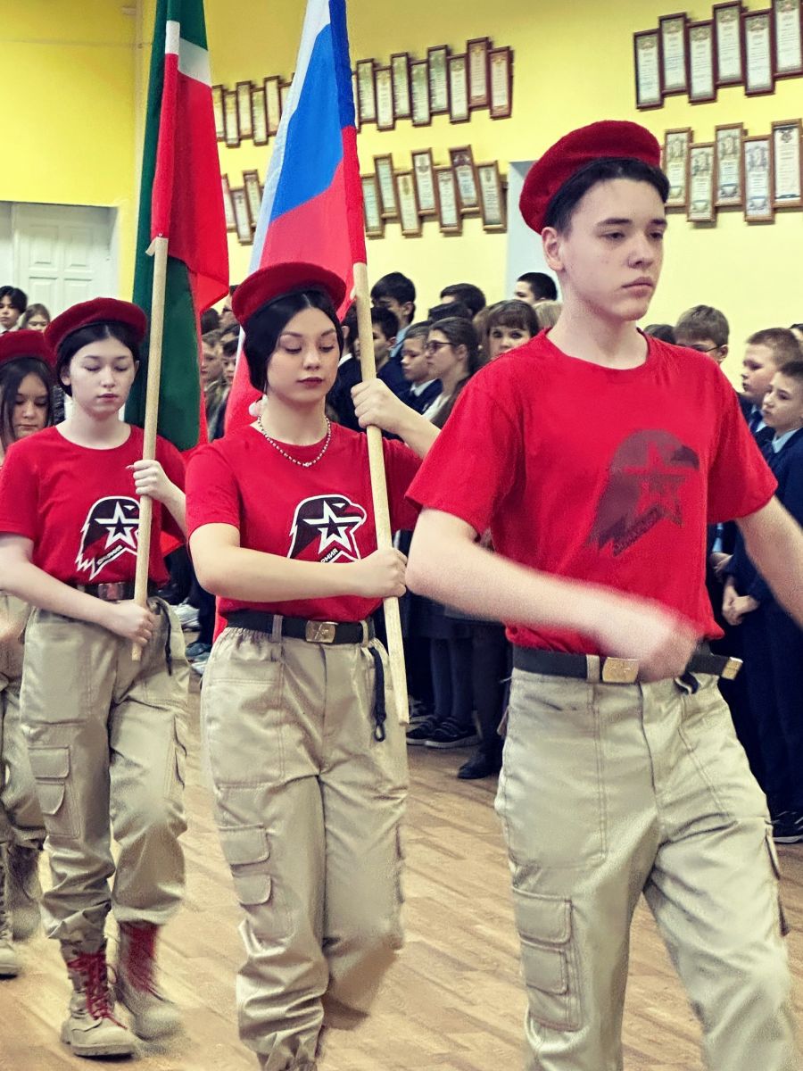 Утро понедельника началось с торжественного выноса государственных флагов Российской Федерации и Республики Татарстан и исполнения государственных гимнов. По традиции сегодня на торжественной линейки подвели итоги и отметили грамотами и дипломами активных ребят, победителей и призеров различных конкурсов. По окончании линейки классные руководители провели занятие «Непокоренные. 80 лет со дня полного освобождения Ленинграда от фашистской блокады» в рамках курса внеурочной деятельности "Разговоры о важном".