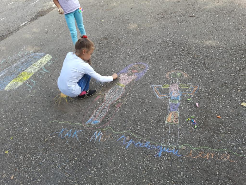23 июля пришкольный лагерь «Солнышко» посетил детскую библиотеку,где ребят пригласили на увлекательную экскурсию «У самого синего моря».Ребята узнали о подводном царстве,познакомились с профессией водолаза.Возвратившись в лагерь ребята нарисовали рисунки на асфальте по теме «Море».