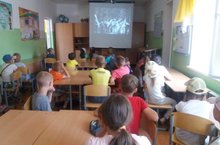 6 июля ребята пришкольного лагеря ходили в кинотеатр.Перед просмотром мультфильма сотрудниками ГИБДД была проведена беседа по правилам дорожного движения.После обеда воспитатели лагеря провели беседу на тему «Сохраним природу во всей ее красе», далее ребят ждала викторина «Природа -наш дом».