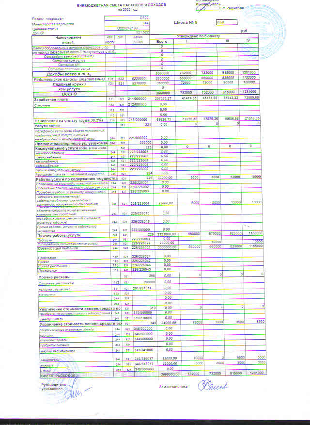 Бюджетная смета расходов и доходов на 2020 год МБОУ "СОШ №5" МО "ЛМР" РТ