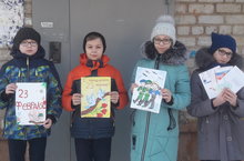 Стало доброй традицией поздравлять жителей микрорайона с праздником.Ребята развесили поздравительные открытки в микрорайоне школы.