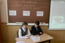 17 февраля в 4 В классе (классный руководитель Табакова Наталья Николаевна) прошло внеклассное мероприятие «Ринг знатоков русского языка», посвященное Международному дню родного (русского) языка. Шесть команд, участвуя в викторине, разгадывали ребусы, вспоминали пословицы, составляли слова и многое другое. В заключение конкурса победители были награждены дипломами. Мероприятие завершилось словами В. А. Луговского: «Относитесь к родному языку бережно и любовно. Думайте о нём, изучайте его, страстно любите его, и вам откроется мир безграничных радостей, ибо безграничны сокровища русского языка».