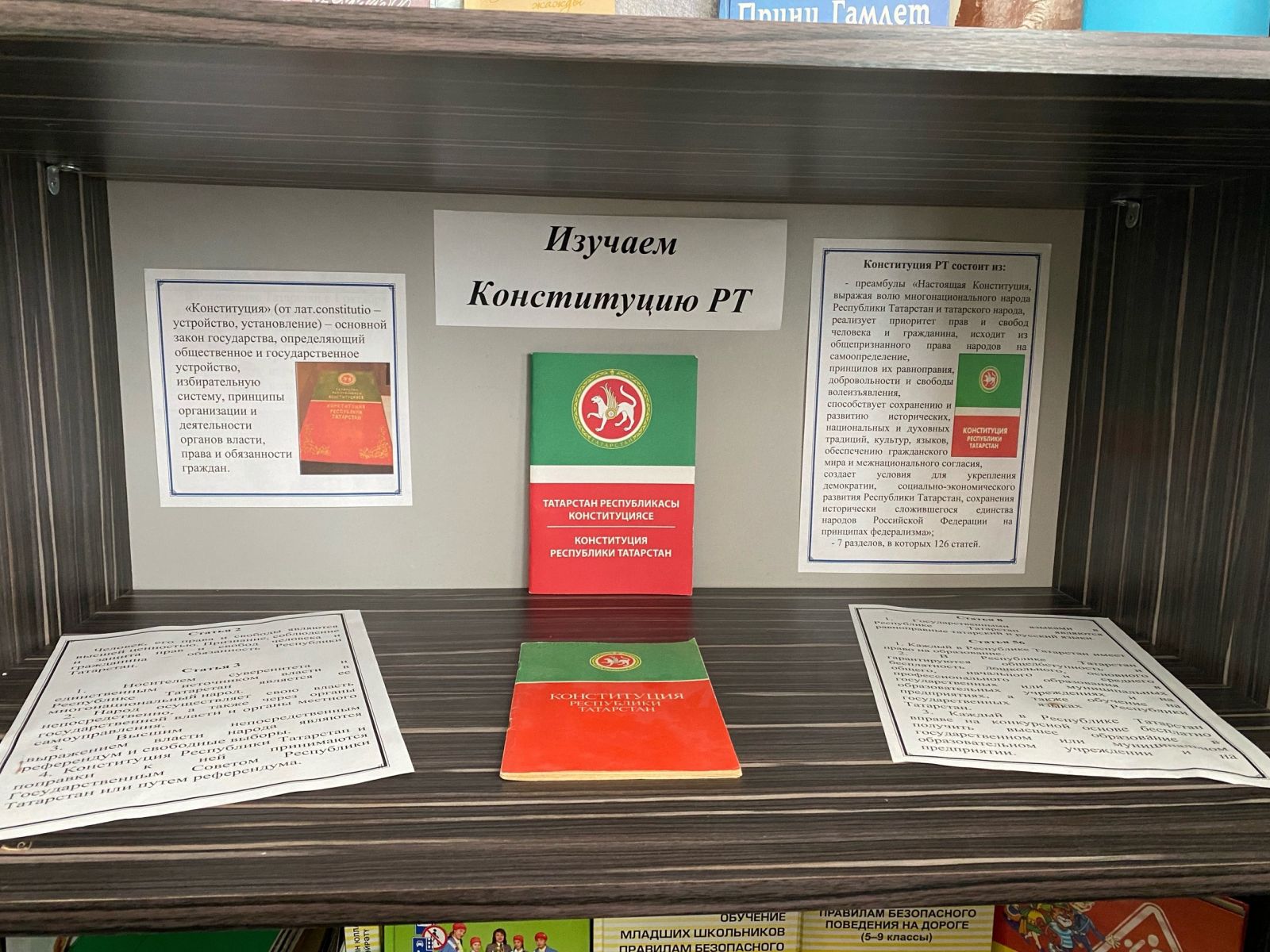 К этому дню в школе прошли беседы, а в библиотеке оформлен стенд "Изучаем Конституцию РТ", также педагоги приняли участие во Всероссийском онлайн-конкурсе «30 лет Конституции России-провесь себя!»