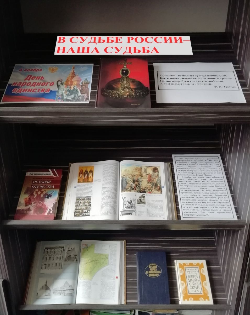 В школе к этому дню проводятся различные мероприятия: выставка рисунков "Россия - наш общий дом", акция "Окна России", выставка книг в библиотеке «В судьбе России - наша судьба», настольная игра "Что я знаю о России", кинолекторий "Гора самоцветов", интерактивная викторина "Братских народов союз вековой", Большой этнографический диктант.