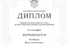 Поздравляем, ученика 9А класса, Комбарова Илью, ставшего призером регионального этапа Всероссийской олимпиады школьников по географии и учителя географии Миронова А.Н.!!! 20.01.2016
