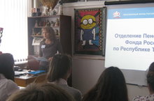5 сентября 2014 года для учащихся 10 классов был проведен круглый стол с начальником отдела выплат Управления Пенсионного Фонда Сираевой Г.Г. Гульназ Гаделевна познакомила ребят с законами о начислении пенсии, ответила на интересующие их вопросы.
