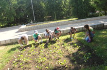 Учащиеся 6А класса (классный руководитель Павлова Т.И.) участвуют в экологической акции "Сделаем город чище". Ребята убирают мусор, подметают дорожки аллеи, пропалывают клумбы.
