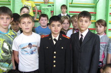 Встреча учащихся 5 а класса с бывшим выпускником 4 А класса Романовым Олегом, сегодня курсантом Казанского Суворовского Военного училища 31.10.2012