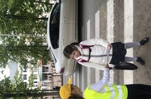 После викторины отряд ЮИД вышли на улицу и раздали памятки юным пешеходам.