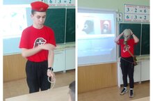 Также на уроке юнармеец Кашапов Эмиль провел мастер класс по вязке узлов на спасательной веревке. Показал, как завязывают узлы «Восьмерка», «Булинь», «Проводник», «Встречный». Бывают моменты, когда нужно уметь привязать человека к опоре или другому человеку (например, при транспортировке травмированного человека) или, когда необходимо уверенно зафиксировать что-либо. Важно использовать крепления по назначению.