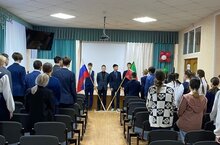 Учебная неделя по традиции началась не со школьного звонка, а с установления флагов и исполнения гимнов РФ и РТ.