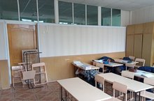 забаррикадировали дверь (партами, стульями),