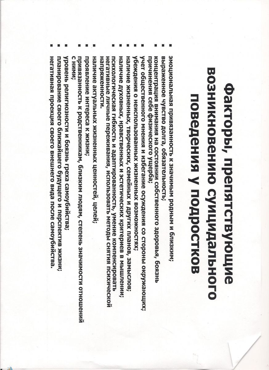 Факторы, препятствующие возникновению суицидальногго поведения у подростков