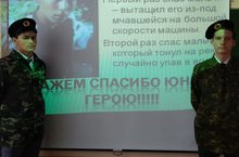 7 мая в рамках реализации Всероссийского проекта «Класс доброты. Герои нашего времени» Юнармейцы нашей школы Обидходжаев Азизходжа и Чатуров Богдан провели акцию с учащиеся 8 Б класса. Юнармейцы познакомили своих одноклассников с подвигом, совершенным героем – нашим современником и их ровесником - Иваном Ткаченко.