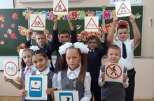 1 сентября - день знаний. В 6а классе 1 урок был посвящён правилам дорожного движения. Ребята в игре вспомнили основные знаки для пешеходов и выпустили плакат "мы за безопасность!"