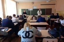 Перед учащимися 9, 11-х классов выступили преподаватели Казанского кооперативного института из кафедры Бухгалтерский учет и финансы Сокольская Елена Игоревна и Свечников Константин Леонидович. Они рассказали учащимся о факультетах и специальностях ВУЗа, условиях поступления, проживания и пригласили на День открытых дверей института, раздали учащимся анкеты и брошюры.