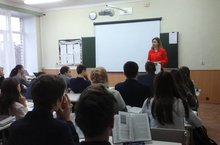 Перед учащимися 9-х классов выступила Загидуллина Татьяна Сергеевна ст.преподаватель Казанского инновационного университета им. В.Г.Тимирясова (ИЭУП). Познакомила учащихся с условиями приема в колледж и специальностями, раздала буклеты о колледже.