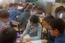В рамках «Недели начальных классов» среди учащихся 4-х классов прошел конкурс «Наш великий, могучий, прекрасный русский язык». Сильнейшие знатоки русского языка совершили путешествие по станциям «Орфоэпической», «Орфографической», «Фразеологической», «Лексической», «Морфологической». Места в конкурсе распределились следующим образом: 1 место-4Б(46 баллов), 2 место-4В(39 баллов), 3 место-4Г(38 баллов), 4 место-4А(37 баллов).