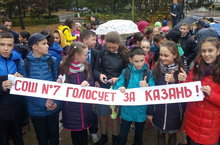 Учащиеся 5-7-х классов приняли участие в акции "Голосуем за Казань". Казань стала первым городом-претендентом с тремя символами для новых купюр, которые выпустят номиналом в 200 и 2000 рублей. К панораме Казанского кремля и виду мечети Кул Шариф добавилось изображение Казанского (Приволжского) федерального университета. До конца голосования осталось 3 дня.