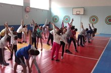 В рамках акции "Осенняя неделя добра-эстафета добрых дел" в нашей школе была проведена утренняя зарядка для учащихся 6-7 классов