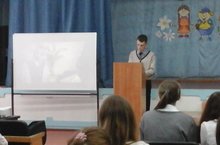 12 ноября в школе прошла встреча для учащихся 9-11-х классов с представителями Казанского национального исследовательского технического университета им.А.Н.Туполева КАИ.Студенты 5 курса Галеев Инсаф и Галимов Ильдар рассказали о ВУЗе, о правилах приема, о студенческой жизни и показали видеофильм. В конце встречи учащиеся получили подарки: буклеты о КАИ, браслеты, значки и магнитики с символикой КАИ.