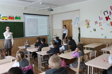 24 апреля 2014 г. был проведен открытый урок математики в первом классе. Урок был представлен в виде сказки о трех поросятах. Вместе с ученицами десятого класса малыши развивали сюжет сказки по своему желанию и одновременно с этим повторяли счет до 20.