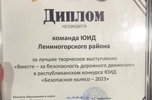 Поздравляем команду ЮИД 4 в класса и классного руководителя Елистратову Эльзу Талгатовну! Они с 23 по 26 мая в Нижнекамске защищали честь ЛМР и были награждены дипломом за лучшее творческое выступление "Вместе - за безопасность дорожного движения" в республиканском конкурсе ЮИД "Безопасное колесо - 2023". Поздравляем, молодцы!!!