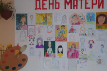 Даря волшебно добрые мгновенья!В школе оформлена выставка рисунков ко Дню Матери.