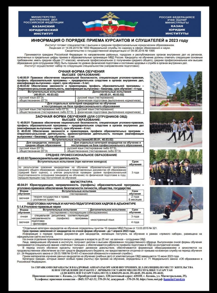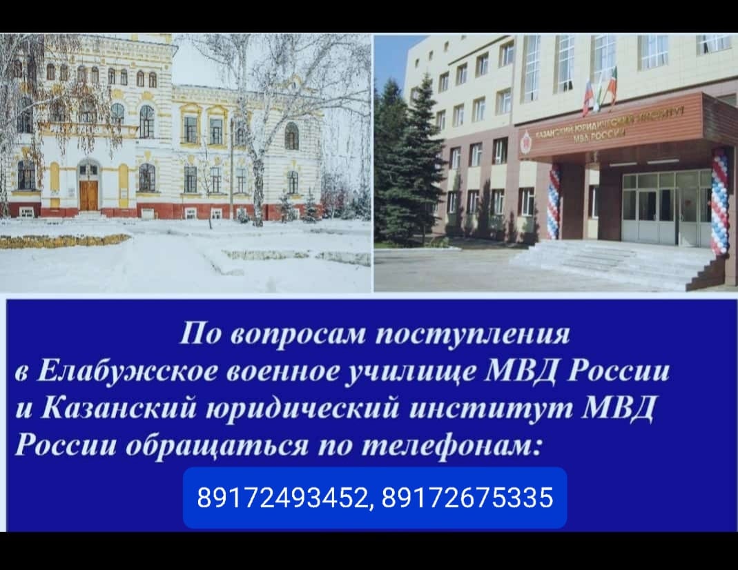 Казанский юридический институт и Елабужское военное училище МВД России, приглашают абитуриентов.