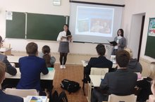 9 нчы сыйныфта Татарстан Республикасында туган телләр һәм милли бердәмлек елы кысаларында сыйныф җитәкчесе Р. С. Гимаева "Дөньяны барлыкка китерә торган сүз" дигән рус культурасының информацион сәгате үткәрде.