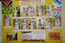 В соответствии с планом мероприятий, приуроченных к 70 - летию Победы в Великой Отечественной войне, учащиеся 5 А класса изготовили стенгазету "Лениногорск - Родина 15 героев". -