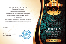 Дистанционная викторина по истории "Сталинградская битва" 15.04.2013 2013 год стал 70-ой годовщиной Сталинградской битвы. Эти 200 дней стали для советского народа переломным моментом в ходе Великой Отечественной войны. Знать историю - значит чтить память народа. Учащиеся СОШ № 8 знают историю. Этому подтверждение победа Кулакова Никиты, учащегося 9 "А" класса, во Всероссийской дистанционной викторине "Сталинградская битва". Поздравляем!!!