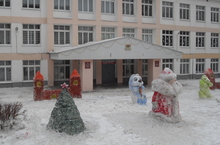 Горки: 5 "а" осьминог , 6 "а" - кит , 7 "а" - елочки, узоры на снегу , 8 "а" - крокодил , 9 "а" - дед мороз, 9 "б" - снегурочка, 11 "а" - веселые сеговики, 10"а" - забор