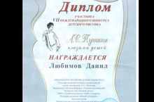 Ученик 2Б класса (кл. руководитель Прибышеня И.А.) Любимов Данил удостоен диплома Всероссийского конкурса рисунков "Пушкин глазами детей". Поздравляем!