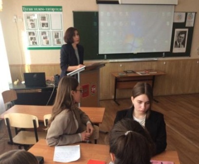 Учителем истории и обществознания Алиевой З.М. был проведён открытый парламентский урок по теме "Татарстан - наш общий дом" в 9 "Б" классе. Урок прошёл продуктивно, учащиеся активно принимали участие, выступали с сообщениями о выдающихся деятелях Республики Татарстан.