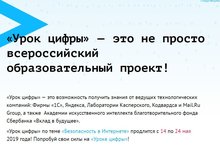 Классные часы 17.05.2019 были проведены по «Уроку цифры» в 1-11 классах по теме «Безопасность в Интернете»