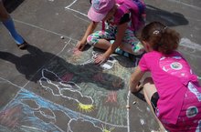 В пришкольном лагере сегодня проведен конкурс рисунков на асфальте "Я рисую Россию!".