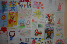 На первом этаже школы организова выставка рисуонков учащихся 1 - 4 классов, посвященная Весеннему празднику - Международному женскому дню 8 марта.
