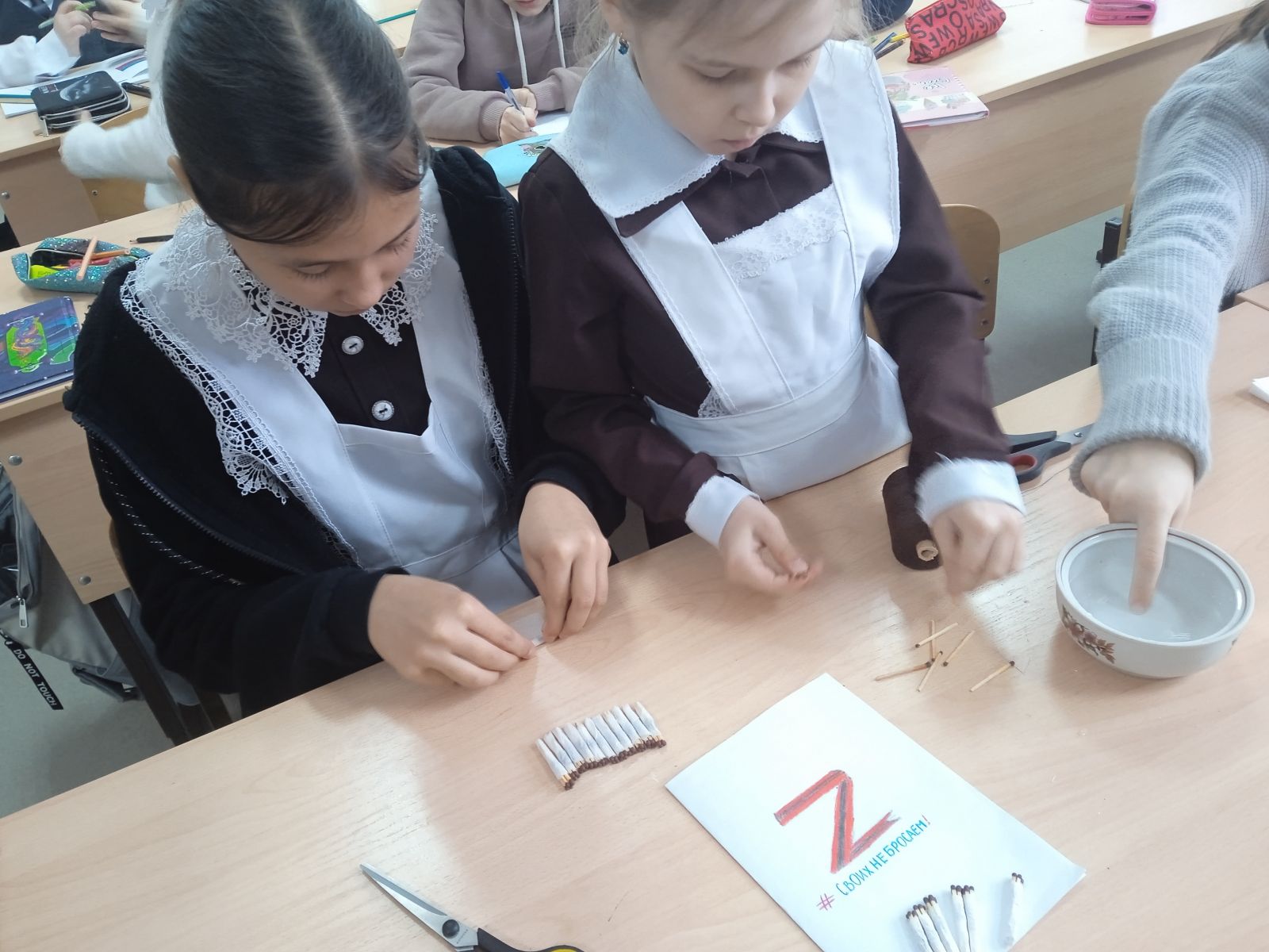 Учащиеся школы нарисовали рисунки и обратились с теплыми словами поддержки в своих письмах ко всем тем, кто сейчас участвует в СВО. В своих письмах школьники выражали искреннюю признательность армейцам, высказали слова поддержки наших ребят, которые сейчас находятся на передовой, на защите прав и свобод людей. Школьники написали им простые и очень теплые и искренние слова, которые именно сейчас им так необходимы.