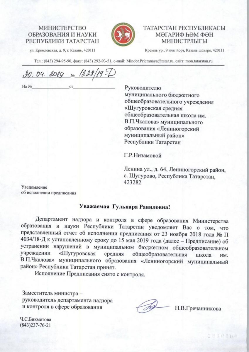 | Короткое название: | МБОУ "Шугуровская СОШ имени В.П.Чкалова" МО "ЛМР" РТ |