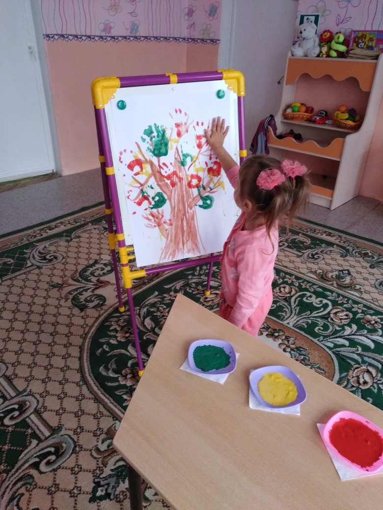 Занятие по нетрадиционному рисованию ладошками в первой младшей группе "Осеннее дерево" 10.09.2020