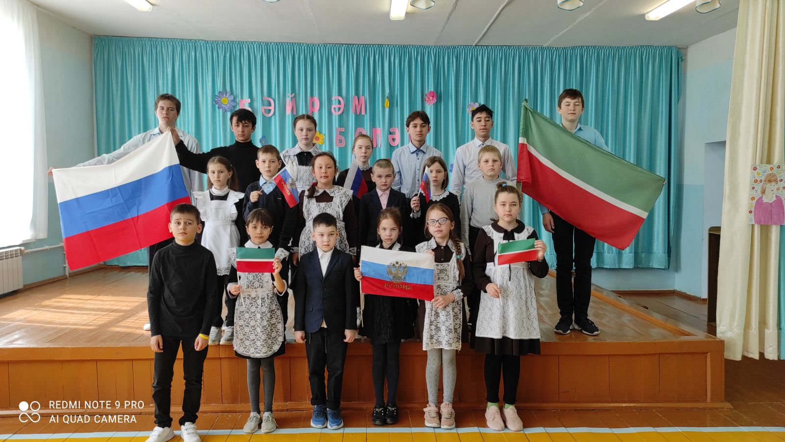 25 апреля в актовом зале школы прошло торжественное мероприятие "Поднятие флагов РФ и РТ". Учащиеся исполнили Гимны РФ и РТ